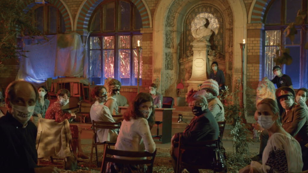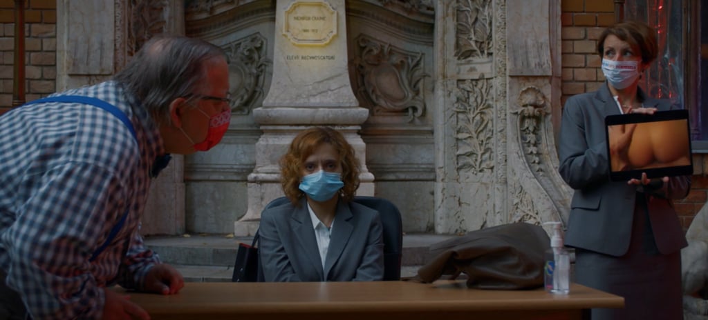 Il capitolo finale, intitolato “Sitcom – Prassi e allusioni”, è un capolavoro di ironia. Emi è arrivata nella scuola dove i genitori dei ragazzi sono già seduti ai loro posti pronti a giudicarla. È qui che tutte le suggestioni raccolte finora trovano sfogo. Distanziati secondo le norme anti-covid, ognuno dei giudici è per questo ancora più enfatizzato nel ruolo stereotipato che ricopre, e come tanti leader d’opinione si esprimono con teorie del complotto e argomentazioni fuori luogo usando come scudo il futuro dei bambini e la morale per celare il proprio imbarazzo. L’argomento centrale del revenge porn non riesce ad essere affrontato con la giusta serietà e viene deriso con battute da liceali. Ma qui viene il bello. Il gioco di specchi messo su da Radu Jude entra in funzione e il processo a Emi diventa un meccanismo secondo il quale a giudicare siamo noi spettatori. Non è il filmino pornografico dell’insegnante ad essere sotto processo. Fra teorie del complotto, negazionismo, accuse di propaganda Lgtbq+/ebraica ed altre castronerie che sembrano esser state tirate fuori dalle peggiori pagine complottiste su Facebook, ad essere messa a nudo è l’incoerenza della natura umana e l’ipocrisia che ne scaturisce. L’oggettività non è altro che un pugno di soggettività condivise. E allora cos’è giusto? La realtà, spogliata di tutte le velleità che la ricoprono, com’è fatta?