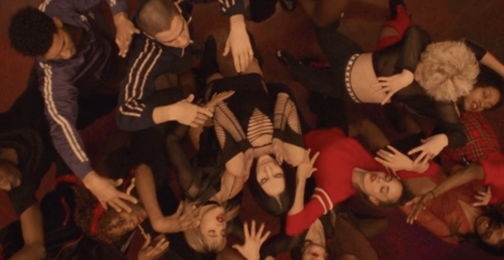 A livello formale è interessante sapere che quasi tutto il film è stato girato senza un copione vero e proprio, e che le sequenze recitate si confondono con quelle liberamente improvvisate, giusto per confermare come Climax sia un film che gioca consapevolmente con i limiti del medium e con la consapevolezza del contrasto fra rappresentazione e realtà. Senza soffermarci sui numerosi riferimenti ben visibili nelle prime inquadrature – presumibilmente la materia su cui si è formata la poetica di Gaspar Noè – credo che l’oggetto di questo film non abbia “forma” poiché parla di spinte insite nell’essere umano che non sono visibili nella normalità. Mentre cercavo di rilassarmi, pur trovandomi immerso nelle semi soggettive e bombardato dalla musica elettronica, avvertivo la sensazione che si parlasse di tutta quella zona d’ombra che si trova a mezza via fra il reale – o la percezione del reale – e la propria dimensione fantasmatica. La sensazione più forte che Climax riesce a restituire è quella del perturbamento: quel sentimento di paura che deriva da qualcosa o qualcuno che viene avvertito come familiare ed estraneo al tempo stesso. La claustrofobia che si respira all’interno del collegio dentro il quale si consuma la psichedelica tragedia, è uno spazio sospeso dal tempo dove le normali leggi della convivenza e dell’etica sono eclissate per lasciare spazio ai più basici istinti primordiali. E non c’è sollievo quando alla fine del film arrivano i soccorsi, anzi. L’irruzione dall’esterno rappresenta uno squarcio traumatico che mette in bella vista quanto di più turpe si è consumato all’interno di quello spazio eterotopico. La riconciliazione con il reale è quanto mai intollerabile.