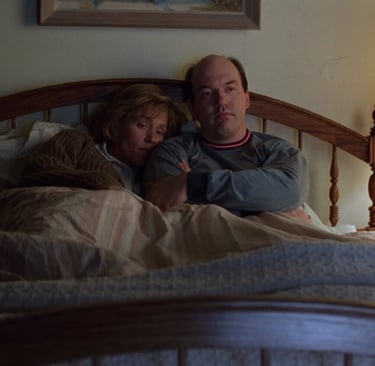 Il rapimento avviene con una lentezza disarmante dettata dal personaggio di Gaear, un colosso che sembra muoversi in un fluido molto più denso dell’aria, reagendo a ogni cosa in ritardo e più preoccupato che la moglie di Jerry lo abbia morso che del fatto che dovrebbe sequestrarla. Ma non assistiamo solo a questo, mentre portano la donna in macchina in una casa su un lago non lontano da Fargo, i due si trovano a compiere un triplice omicidio. Sullo sparo che ucciderà l’ultima vittima lo schermo diventa nero e ci porta nella tranquillità matrimoniale di Margie (Frances McDorman) e Norm (John Carroll Lynch), che viene interrotta dallo squillo del telefono. Così, dopo quasi mezz’ora dall’inizio del film, conosciamo la co-protagonista, l’agente Marge Gunderson, che seguiremo mentre tenta di risolvere il caso.