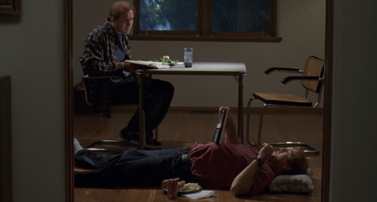 C’è uno sdoppiamento in Adaptation, e non riguarda soltanto la duplicazione della cellula Nicolas Cage nei due gemelli Charlie e Donald Kaufman, entrambi sceneggiatori. Osservando più da vicino la struttura di questo meta-film, si nota come i due piani di reale e immaginario tendano a richiamarsi in modo costante: Charlie (personaggio) e la sua sceneggiatura (ancora da scrivere) si riferiscono vicendevolmente a Kaufman (reale) e alla sceneggiatura (finita) che guida la trama del film che guardiamo.