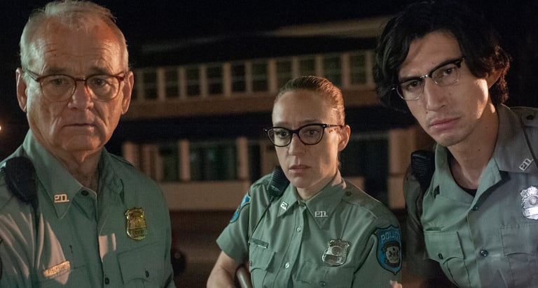 I migliori zombie sono i primi, interpretati da Sara Driver (regista e partner di lunga data di Jarmusch) e Iggy Pop. Si presentano alla tavola calda locale, dopo l’orario di chiusura in cui sono rimaste solo le due dipendenti, tra cui Ezster Balint, protagonista del film Stranger Than Paradise del 1984. I due si avventano sulle prede, creando un caos comicamente sanguinoso, fino a quando la loro attenzione non viene catturata dalle caffettiere ancora fumanti sui fornelli, che li portano a dimenticarsi completamente delle interiora bramate fino a pochi secondi prima. Il clima del film è in costante equilibrio tra sangue e ironia, rimarcato anche dalla natura dei poliziotti, caratterizzata da una sorta di costante apatia che non sfocia mai nel terrore o nel panico. È iconica, in questo senso, la parte in cui i corpi delle due cameriere vengono trovati in condizioni tremende all’interno del diner. Lo spettatore dovrebbe essere qui indotto a provare ribrezzo nel vedere dei cadaveri ridotti in questo modo, ma il ritmo in cui la scena è girata e le espressioni dei protagonisti rendono il tutto ironico. Il primo ad arrivare è Bill Murray, che reagisce alla vista dei corpi in maniera quasi impassibile. Poi, a bordo di una Smart rossa, arriva Adam Driver. La scena è la medesima, le inquadrature anche, la reazione distaccata molto simile a quella del collega. Sarà solo Mindy a comportarsi da umana, piuttosto che da androide senza sentimenti e reazioni di alcun tipo, ristabilendo l’ordine, ma rendendo ancora più canzonatoria la scena in questione.