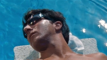 La condizione esistenziale di Benjamin si manifesta quando, completamente equipaggiato per un’immersione subacquea nei pressi della piscina dei suoi genitori e circondato dai loro amici, viene incitato dal padre ad immergersi. La visione di un ragazzo in muta da sub che fissa il vuoto sul fondo di una piscina risulta paradossale ed emblematica per descrivere la condizione di un personaggio smarrito, che non sa cosa sta facendo e soprattutto non sa dove sta andando.