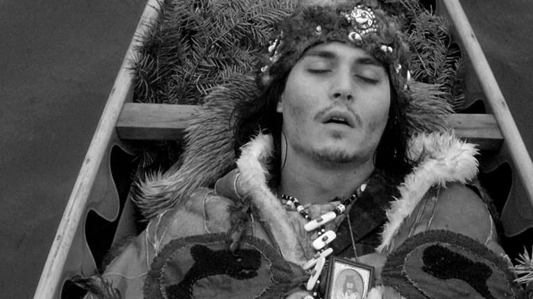 È qui che inizia il viaggio spirituale di William Blake verso la morte: il nativo americano dal nome “Nessuno” – interpretato da Gary Farmer – lo trova riverso in fin di vita in una pozza mista a sangue e fango. La fuga dalla città e la ricerca di un rifugio nella foresta portano il protagonista a non comprendere più cosa sia vero e cosa sia frutto della sua immaginazione. Jarmusch è un perfezionista nel cercare di ricreare sinestesie; lo spettatore si sente come cullato dai ritmi cadenzati e distorti di ogni tappa del lungo cammino, la lentezza e la quiete dei boschi fanno da contraltare al dolore e all’irrequietezza che caratterizzano i pochi attimi di lucidità del già-morto William Blake, il quale sembra trovare rifugio alle proprie pene solo fra le braccia di Morfeo. Nessuno, convinto che il suo compagno di viaggio sia la reincarnazione del poeta inglese omonimo, si prende in carico di far trapassare la sua anima nel mondo degli spiriti, proteggendo il giovane dagli uomini che lo inseguono, a causa della taglia che incombe sulla sua testa, posta da Dickinson per rivendicare la morte del figlio. Il voyage diviene il pendolo tra sogno e realtà, tra la vita e la morte, tra ciò che vi è, che esiste, e ciò che ormai non c’è più e di cui rimane solo un’ombra. La vecchia identità di William Blake è ormai sfumata, al suo posto, uno spirito nuovo abita le membra del timido contabile di Cleveland: una forza redentrice muove gli ultimi passi di costui, prossimo al trapasso e pronto a ricongiungersi con il grande spirito della terra, per concedersi, finalmente, un po’ di ristoro, cullato dalle acque del fiume.