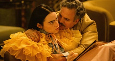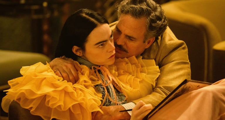 Ci troviamo a Londra, in epoca vittoriana, e il dottor Godwin Baxter (Willem Defoe), sinistro e brillante chirurgo dal volto deforme, decide di riportare in vita una giovane donna suicida, di cui trova il corpo inanimato tra le sponde del Tamigi. Per farlo, impianta nella donna il cervello del feto che portava in grembo, dando così vita a una creatura goffa eppure estremamente affascinante in cui l’età anagrafica e quella cerebrale non corrispondono. E’ un essere peculiare, Bella Baxter (Emma Stone), senza freni né filtri censori, che, oltre ai notevoli progressi nel linguaggio e nei movimenti, accumula fame di vita e voglia di scoprire il mondo. Promessa sposa al giovane e tenero assistente di Godwin (Ramy Youssef), deciderà ben presto di scappare alla ricerca di un’avventura con Duncan Wedderburn (un delizioso Mark Ruffalo), vizioso avvocato che la inizierà ad alcuni dei piaceri della vita. Alla Londra in bianco e nero degli inizi, si susseguiranno città come Lisbona, Alessandria e Parigi, tra una palette iper satura e atmosfere surreali, degne di un dipinto di Hieronymus Bosch.